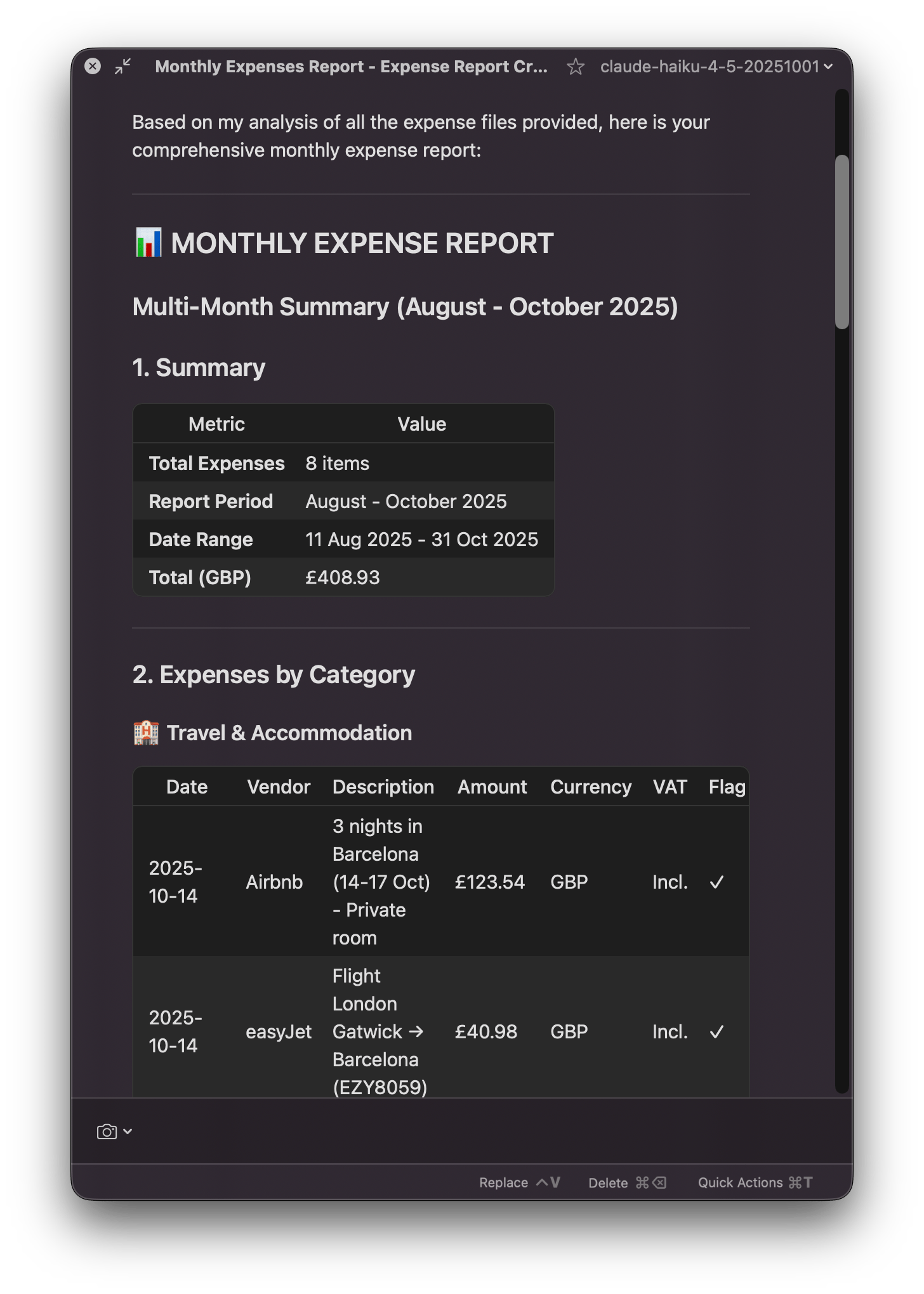 Here's the magic: the Expense Report action doesn't just generate a report – it goes one step further.