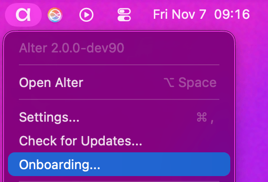 No digging through preference panels. No checkboxes. Just tell Alter what you want, and it handles the rest.